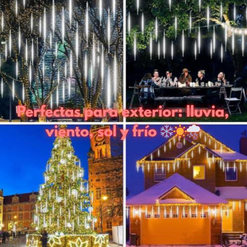 Además, están diseñadas para soportar lluvia, viento, sol intenso y bajas temperaturas, ideales para usar en exteriores durante toda la temporada navideña.
